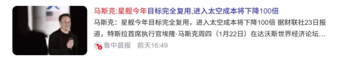 2026年1月24日最新消息,特斯拉CEO埃隆.马斯克在达沃斯世界经济论坛上表示,SpaceX希望今年通过"星舰(Starship)"技术实现火箭完全可重复使用,这一突破将使太空进入成本骤降99%,降至每磅100美元以下。