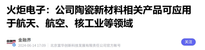 隔热材料:公司的陶瓷纤维产品具有A(A1)级不燃的最高燃烧性能等级,具备防火功能属性,且公司正在推进部分其他相关防火市场的研究研发,具备年产59万吨陶瓷纤维产能。公司产品可应用于钛行业,钛合金可以用于飞机制造领域,目前公司隔热材料暂未直接应用于航天领域,但是商业航天隔热层材料潜在供应商。