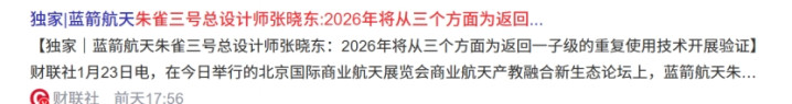 当前我国在可回收火箭领域正处于爆发前夜,尽管2025年12月的朱雀三号和长征十二号甲回收失败,近期朱雀三号总设计师张晓东也明确表示,2026年将从三个方面为返回一子级的重复使用技术开展验证。2026年上半年大概率大火箭回收方面就会取得成功。